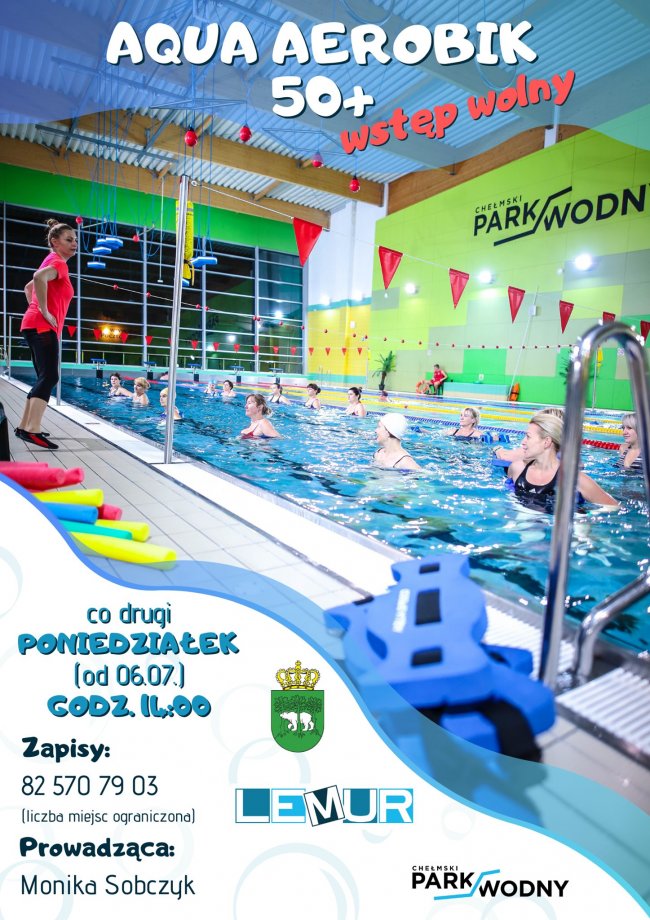 Aqua Aerobik zupełnie bezpłatnie dla mieszkańców Chełma - dla kobiet i mężczyzn powyżej 50 roku życia.