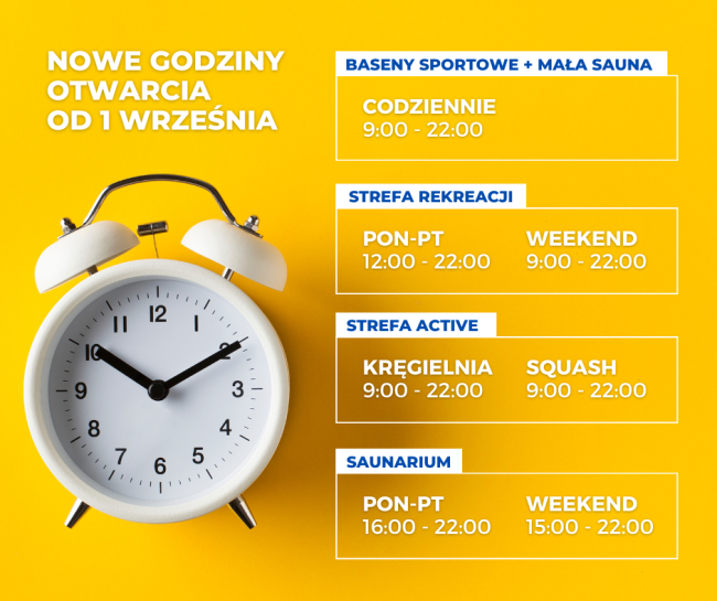 NOWE GODZINY OTWARCIA OD 1 WRZEŚNIA
