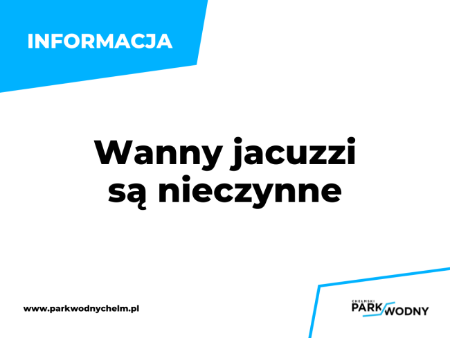Drodzy Goście, informujemy, że od wtorku 18.01.2022. z powodu przerwy technologicznej, wszystkie wanny jacuzzi będą nieczynne. Planowany czas zakończenia prac to 28.01.2022. Za utrudnienia przepraszamy.