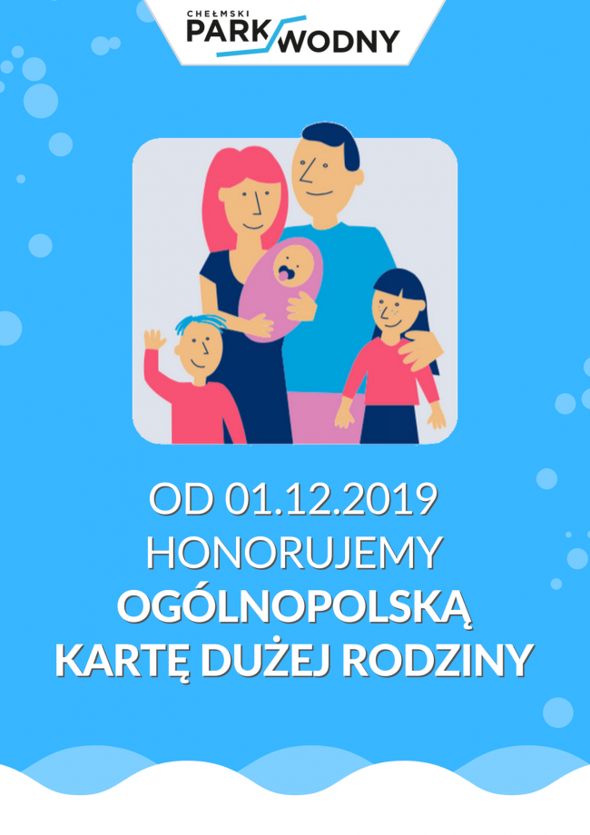 Od 1 grudnia ogólnopolska Karta Dużej Rodziny upoważnia do zniżek w Chełmskim Parku Wodnym