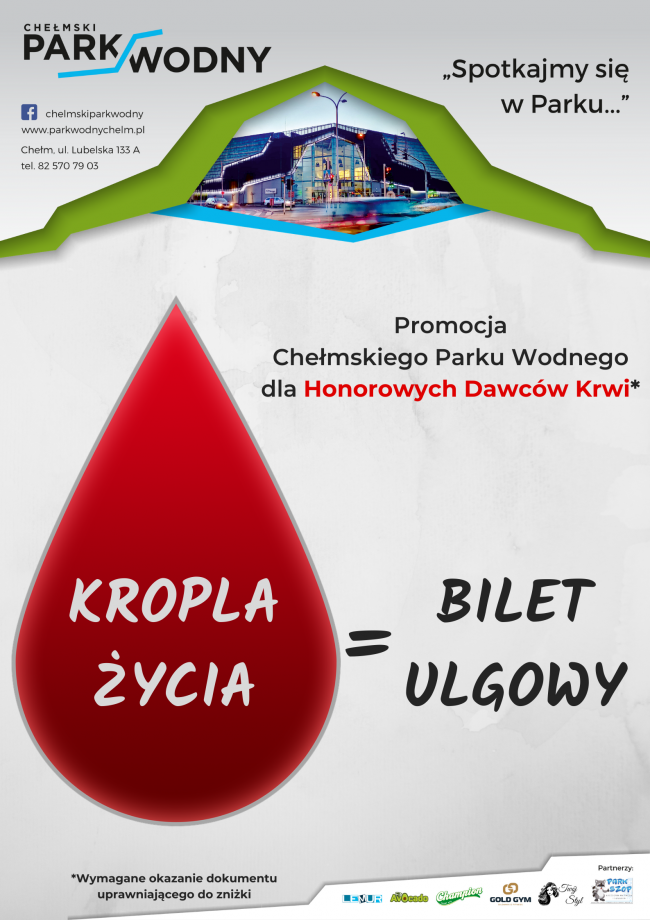 Honorowy Dawco Krwi, codziennie korzystasz z biletów ulgowych w całym obiekcie.